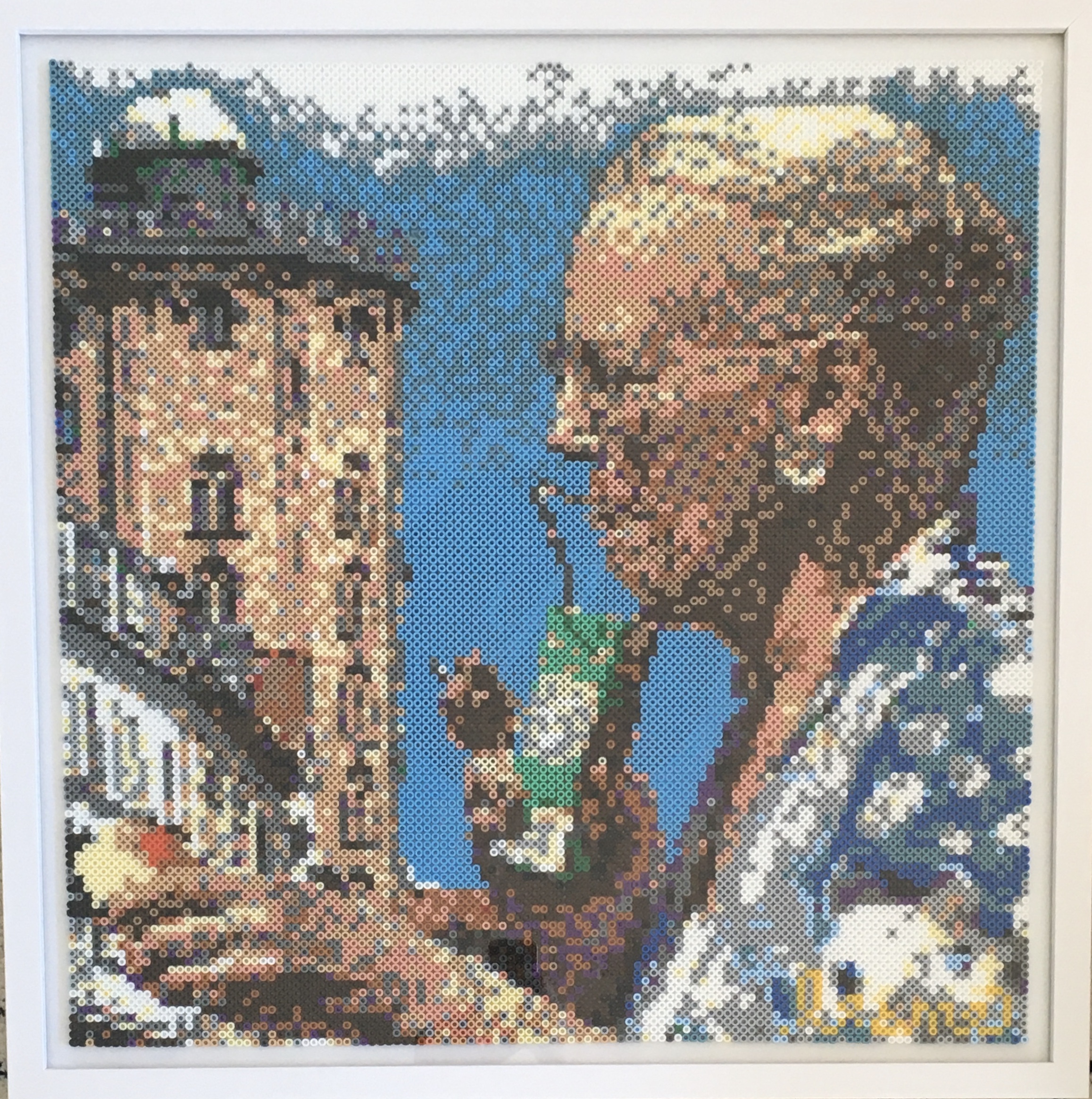 Perlepladen vi alle kender fra vores barndom har jeg taget med ind i voksenlivet. Jeg finder det fascinerende hvordan man kan lave de mest fantastiske billeder, med bitte små stykker farvet plastik. Jeg bruger timevis med at vælge farver, proportioner og at lægge perlerne rigtigt, så billeder får lige præcis det udtryk jeg har i min fantasi.
