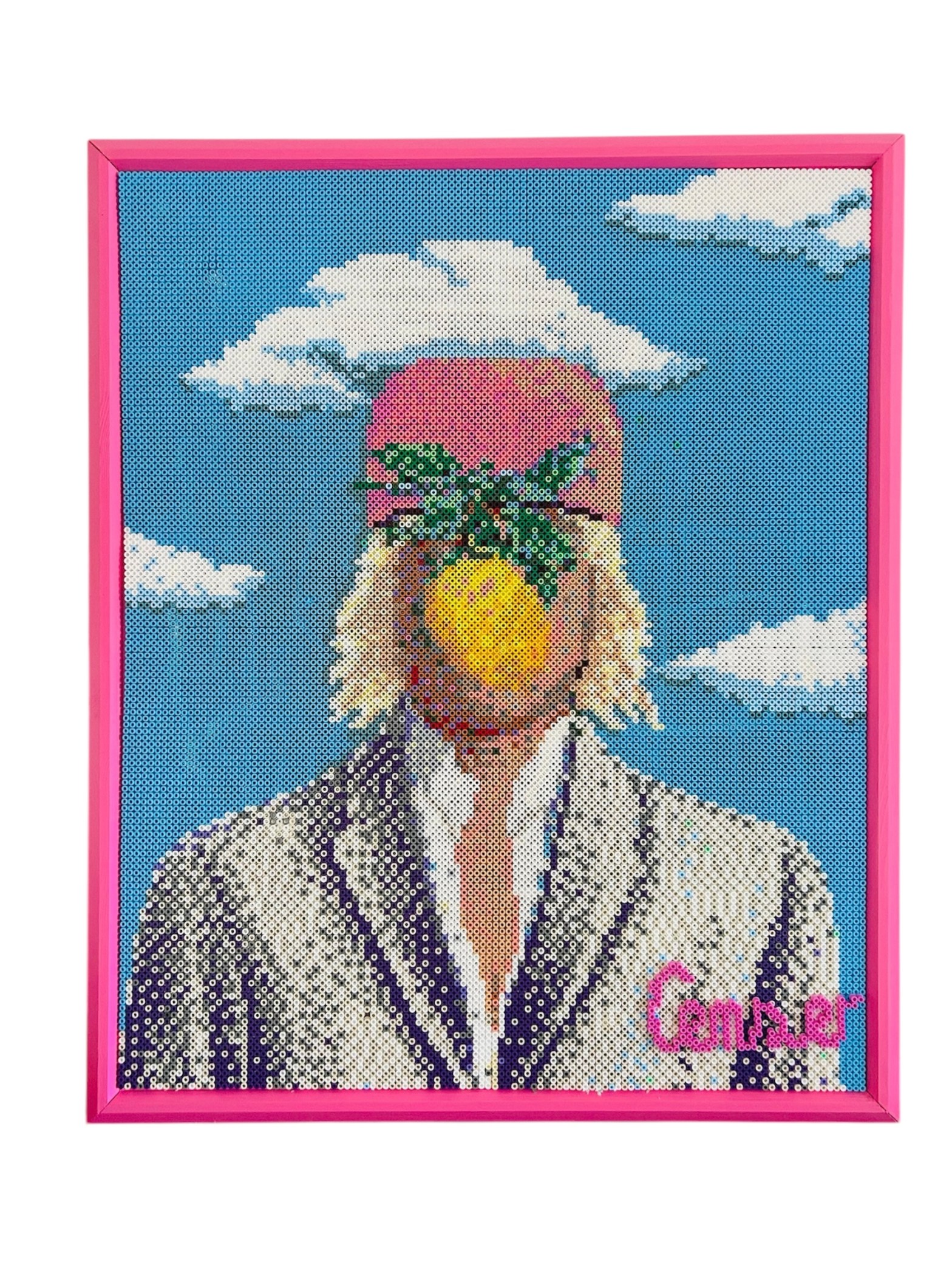 En parafrase af Magrittes selvportræt “Le fils de l’homme” / Menneskesønnen fra 1964. Værket opstod som reaktion på den manglende ligestilling i kunsten, med et ønske om at gøre fokus på kvinder i kunsten.
